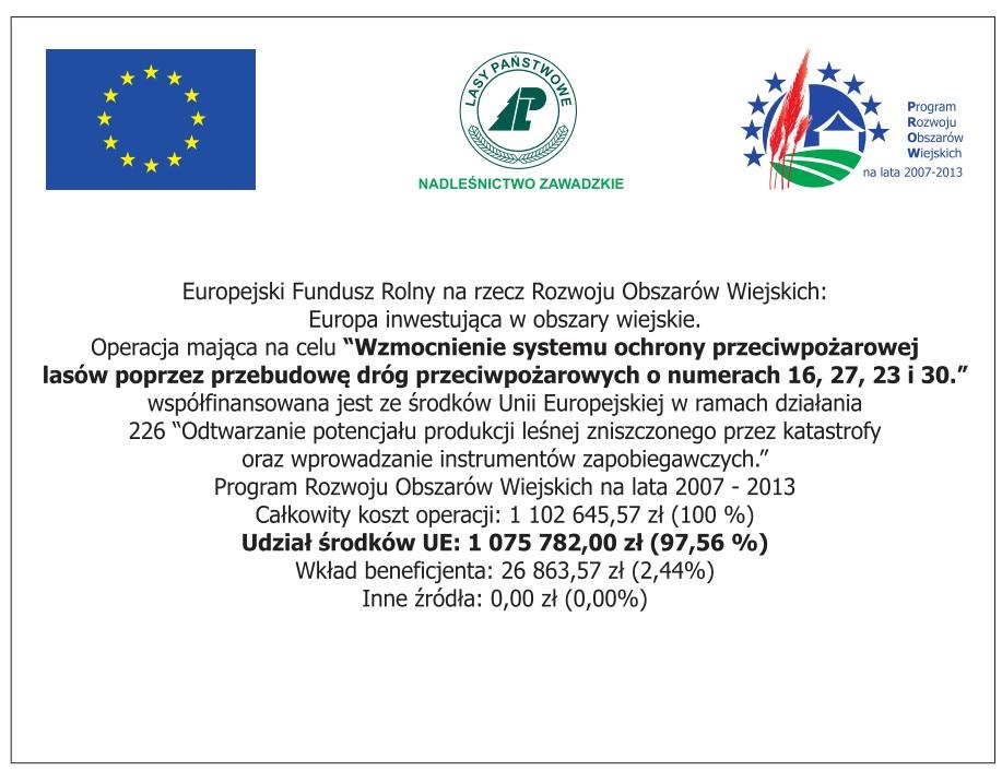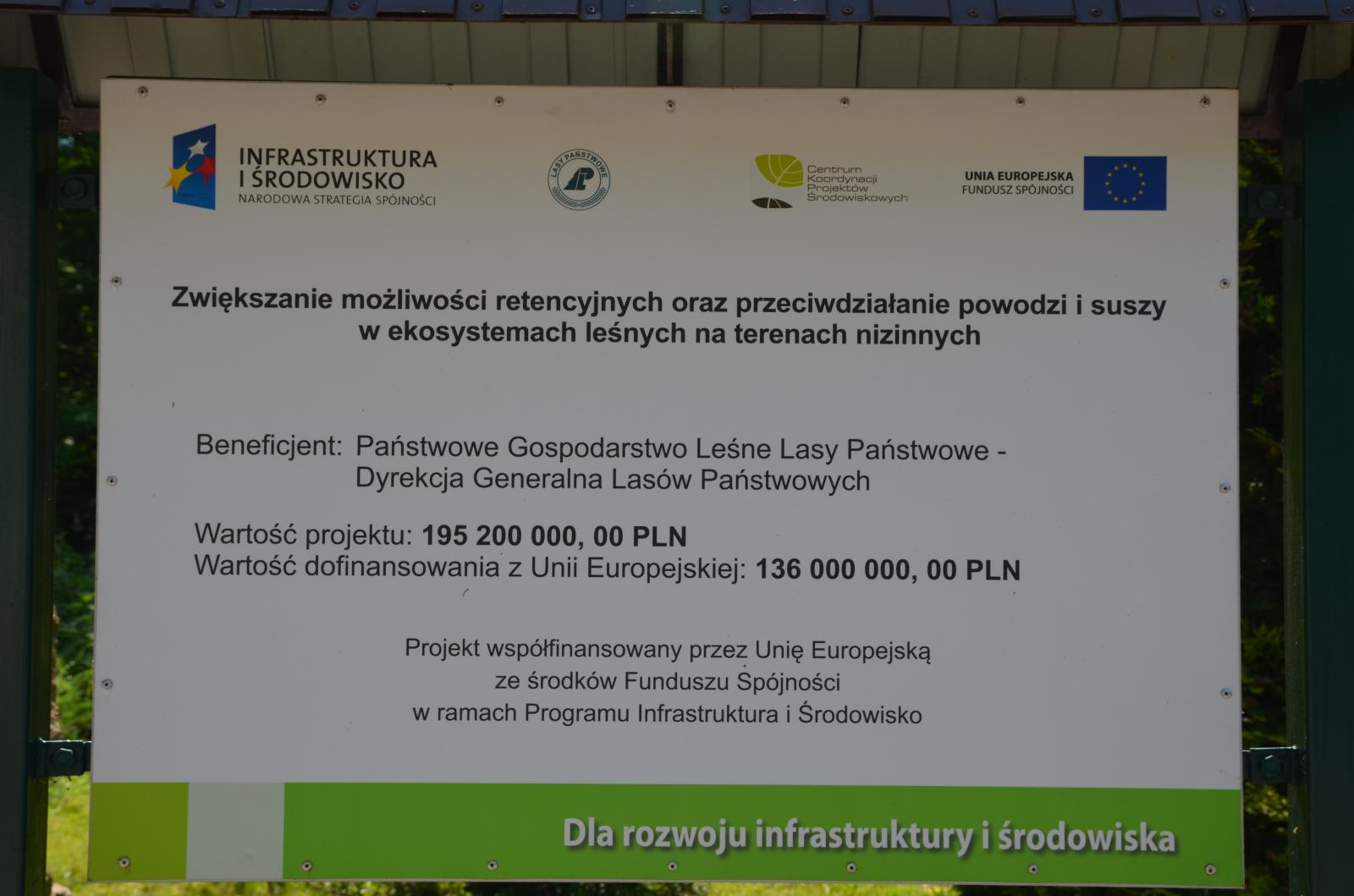Projekt „Zwiększenie możliwości retencyjnych oraz przeciwdziałanie powodzi i suszy w ekosystemach leśnych na terenach nizinnych” Nr POIS.03.01.00-00-003/09-00 w ramach działania 3.1 Retencjonowanie wody i zapewnienie bezpieczeństwa przeciwpowodziowego priorytetu III Zarządzanie Zasobami i przeciwdziałanie zagrożeniom środowiska Programu Operacyjnego Infrastruktura i Środowisko 2007-2013