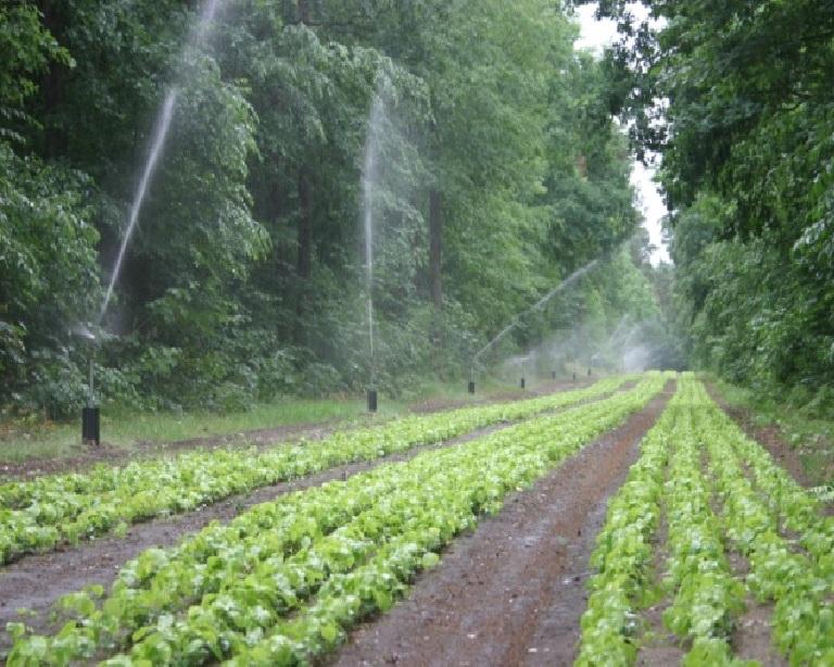 Kwatera z sadzonkami buka w trakcie deszczowania ( fot. A. Jamrozik)