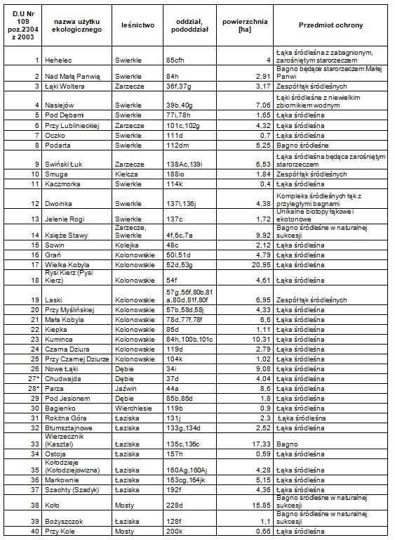 Wykaz użytków ekologicznych wg Rozporządzenia Nr 0151/P/9/2003 Wojewody Opolskiego z dnia 8.12.2003 r: